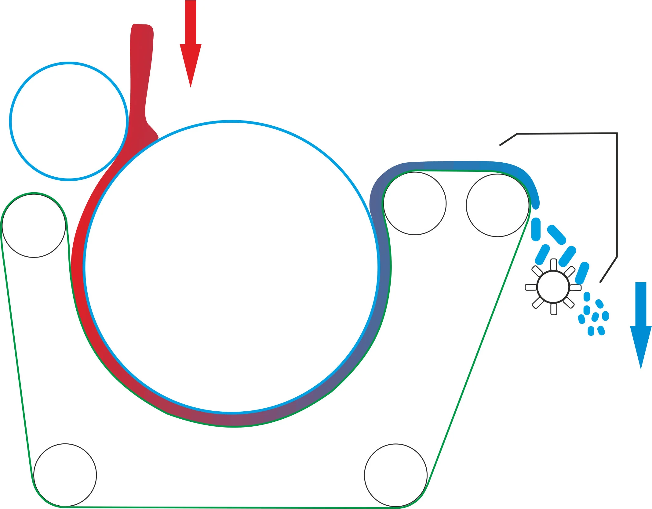 Our drum cooler are designed for the continuous Cooling, Solidifying and Flaking of viscous materials . The hot melt is being rolled out into a thin film. This film is then being pressed up against the surface of a cooled drum and fed solidified into a flaker unit.